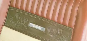 • Deluxe, Pony Interieur (umfasst aufwändiger gestaltete Sitzbezüge mit eingeprägten Pferdchen in den Rückenlehnen, Armaturenbrett, Handschuhfachdeckel und Lenkrad in Holzdecor, (ebenfalls Abdeckung Mittelkonsole, falls vorhanden), Fussraumverkleidung mit Teppich und Zierleiste, Innenleuchte in Türunterseite, spezielle Türverkleidung mit umlaufender Chromleiste und Türgriff (Pistolengriff) in Holzdekor, gepolsterte Sonnenblenden und Chromzierringe um die Pedale), $94.31