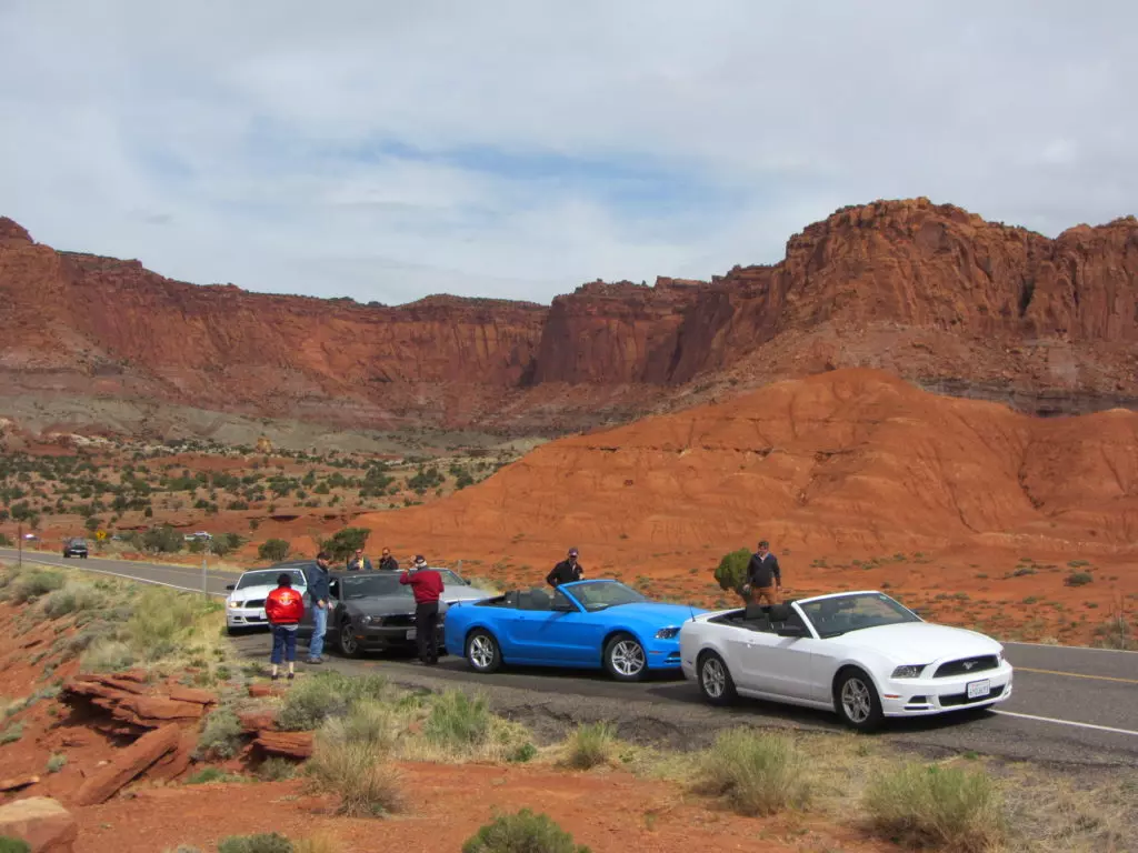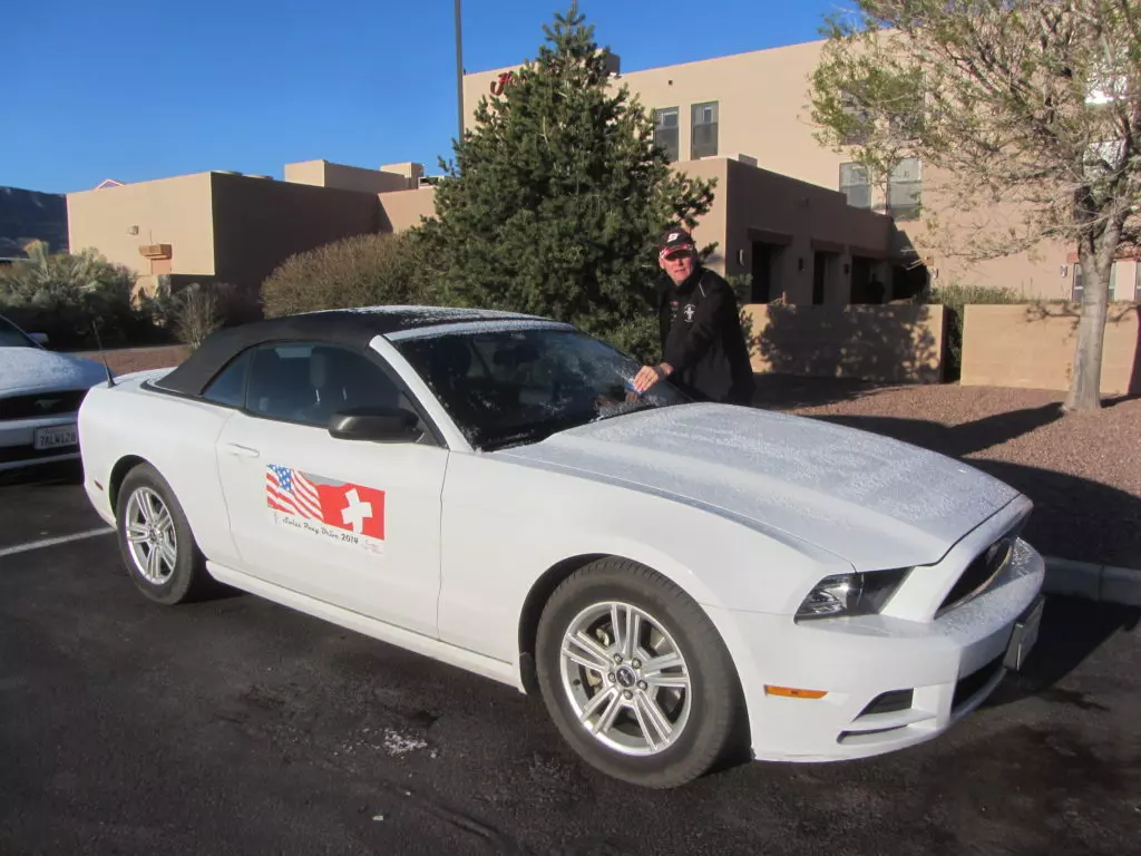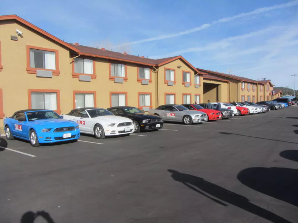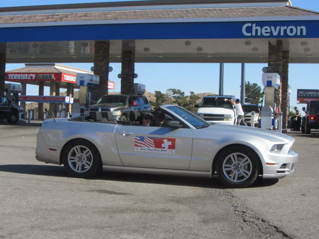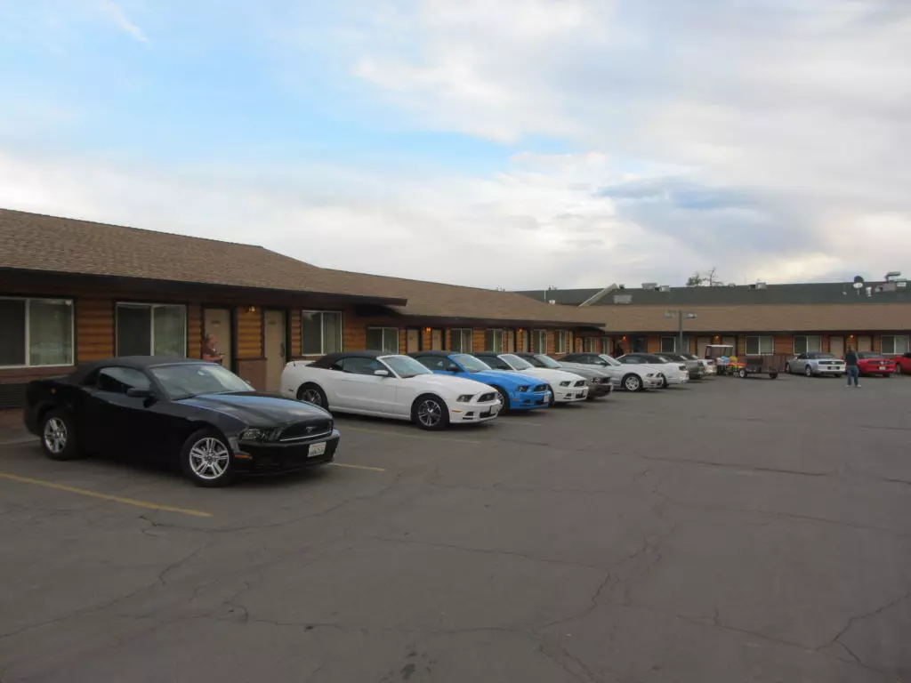 Das mit dem verspäteten Eintreffen auf dem Speedway hat sich als optimal heraugestellt, da unsere Kollegen so wie die meisten Mustangfahrer blockiert waren mit der Einfahrt durch einen Halbmarathon der gleichzeitig am Speedway durchgeführt wurde. Ja richtig gelesen, der amerikanische Mustang Club hatte einen Halbmarathon für Läufer organisiert, da waren einige 10’000 Leute die blockierten alles und von Autos hatten diese keine Ahnung! Die Läufer und Besucher des Marathons hätte alle Einlass gehabt zum Geburtstagsevent. Die Verkehrposten konnten nicht mal Mustangs von den normalen Autos unterscheiden! Chaos pur. Aber bis wir da waren hatte sich der Spuk gelegt, wir fuhren ohne Probleme auf unseren VIP Parkplatz.